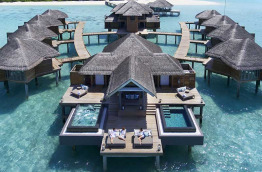 43 Overwater Villas de 135 m2 très bien conçues et agréables avec un accès direct au lagon qui vous permet de vous baigner directement depuis votre villa. La spacieuse terrasse bénéficie d’une table et de chaises, de chaises longues, d’une zone ombragée, d’un filet tendu au-dessus de l’eau et d’une douche extérieure. La salle de bains est très lumineuse, elle donne sur votre terrasse afin que vous puissiez profiter de la vue de partout. La douche intérieure est équipée d’une grande baie vitrée qui vous permet d’admirer la mer.
