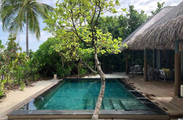 Capacité maximale : les Beach Villas with Plunge Pool et les Overwater Villas peuvent accueillir 2 adultes et 1 enfant. Les Beach Pool Villas, les Overwater Pool Villas et les Overwater Deluxe Pool Villas sont conçues pour 2 adultes et 2 enfants ou 3 adultes.