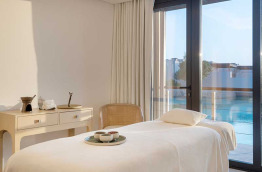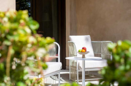 11 Serenity Junior Suite offrent espace et élégance. Plus grandes, elles sont dotées d’un dressing et d’un grand canapé. Elles disposent d’une terrasse et d’une piscine privée.