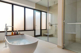 47 Serenity Grand Deluxe Room sont réparties tout le long du grand lagon artificiel. Elles offrent un cadre tranquille, légèrement à l’écart des espaces communs.