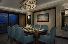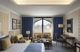 La Al Najada Suite est la plus vaste, avec environ 220 m2. Cette suite exceptionnelle compte 3 chambres, un balcon avec vue sur la place, un salon, une cuisine et une salle à manger.